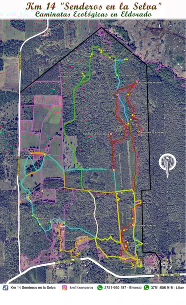 Descubre nuestros senderos en Eldorado, Misiones, rodeados de naturaleza y vida silvestre en 130 hectáreas de bosques nativos.
